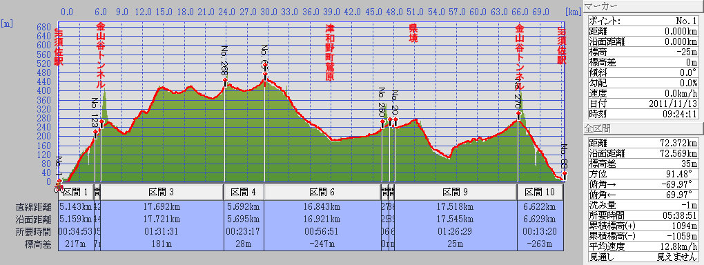 | 山口県萩市須佐〜島根県鹿足津和野郡 | 72km | 2011年11月13日 |