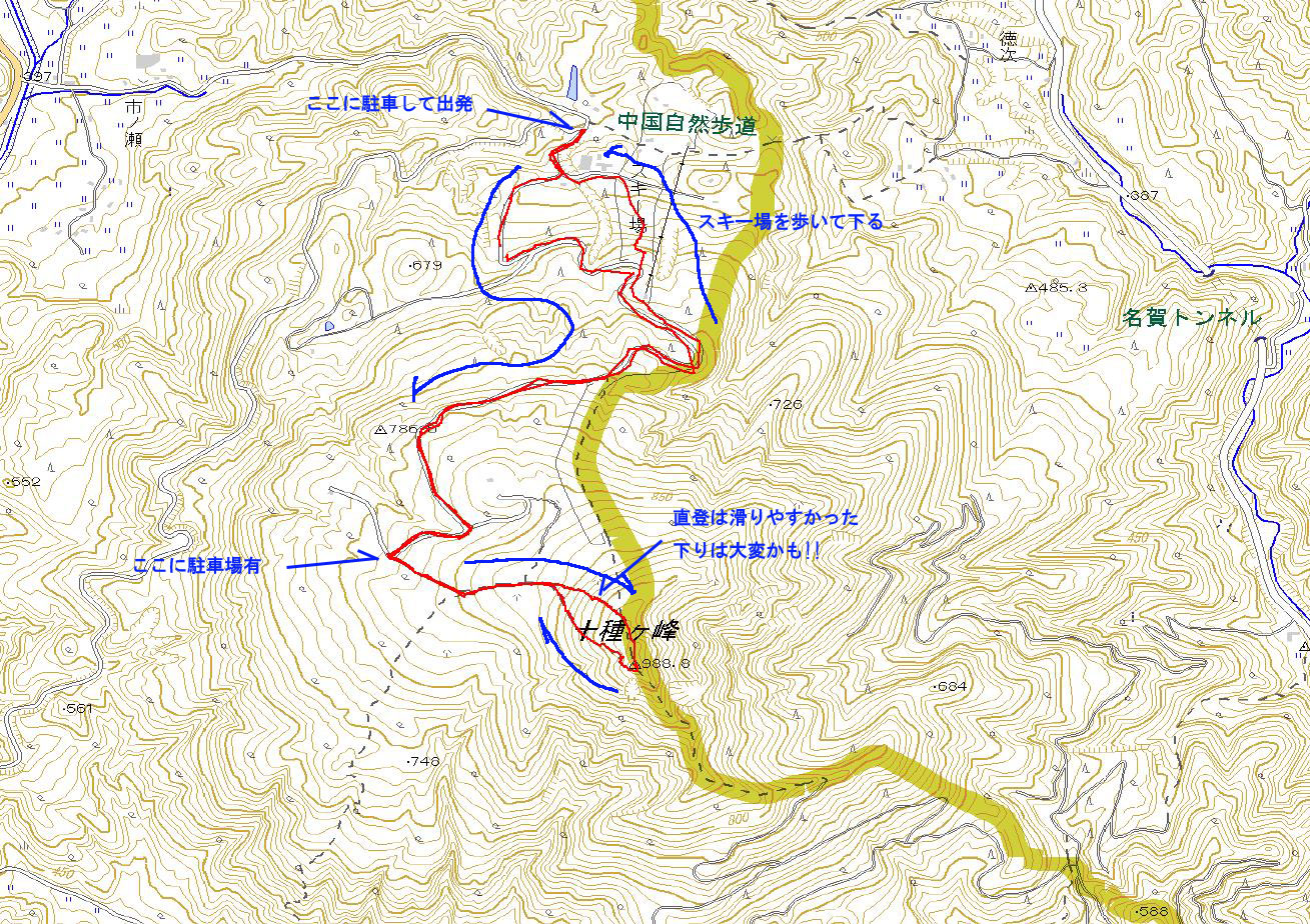 9:48 駐車場出発 舗装道路をしばらく歩く。天気が良すぎて日差しが暑い。 10:48 登山口 ここからようやく未舗装の登山道となる。 11:00 分岐点 真っすぐが尾根にあがり、右が熊野権現を通り頂上。真っすぐ上がることにする。道がすべりやすい 11:15 頂上 360度の展望、弁当を食べしばらく休憩。 11:47 下山開始 熊野権現経由で下る。 11:58 分岐点 12:07 登山口 途中からスキー場の急な草はらを転倒しない様にゆっくりくだる。 13:00 駐車場 |