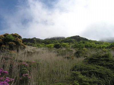 | 13:09 左下に東登山口 とミヤマキリシマ |