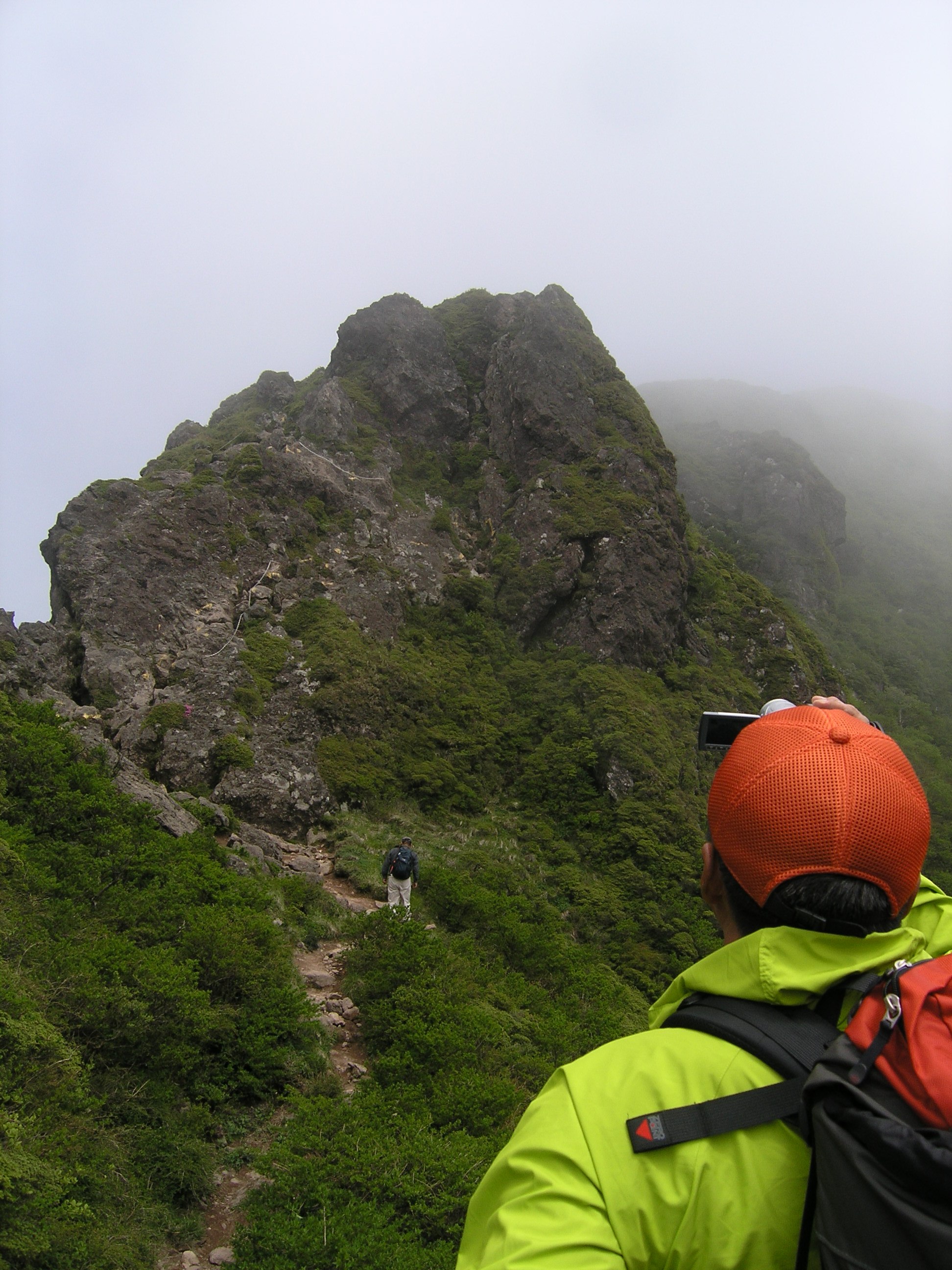 10:47西峰到着、昼食11:20お鉢周り出発、途中で東峰からのパーティと出会いすれ違いに苦労する。